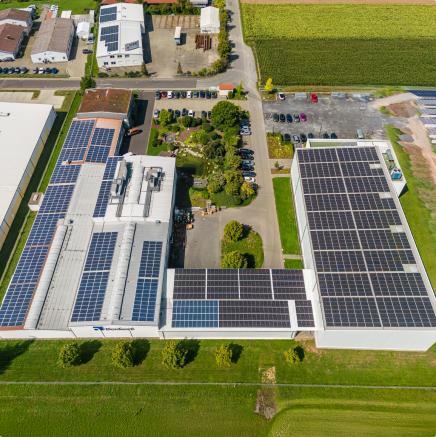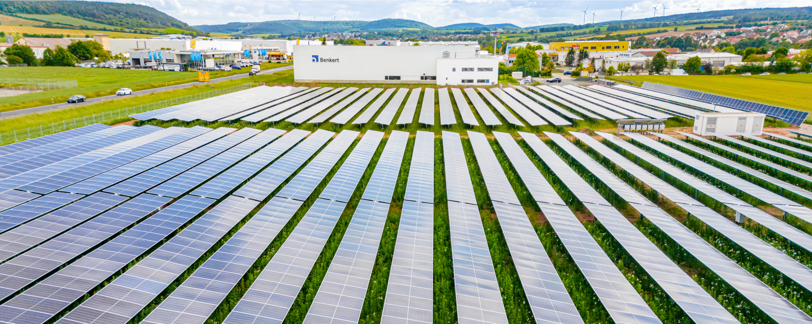 Um eine nachhaltige Produktion zu ermöglichen, haben wir bei Benkert verschiedene Maßnahmen umgesetzt. Dazu gehört zum einen der Einsatz eines Blockheizkraftwerks, das gleichzeitig Strom und Wärme effizient erzeugt. Zum anderen sind, um saubere Solarenergie zu gewinnen, auf allen unseren Dächern Photovoltaikanlagen installiert, ergänzt durch ein zusätzliches Photovoltaik-Feld auf unserem Firmengelände.